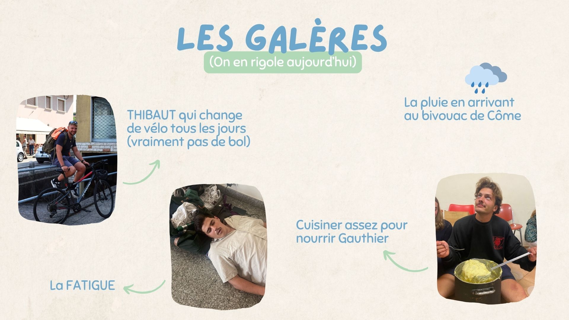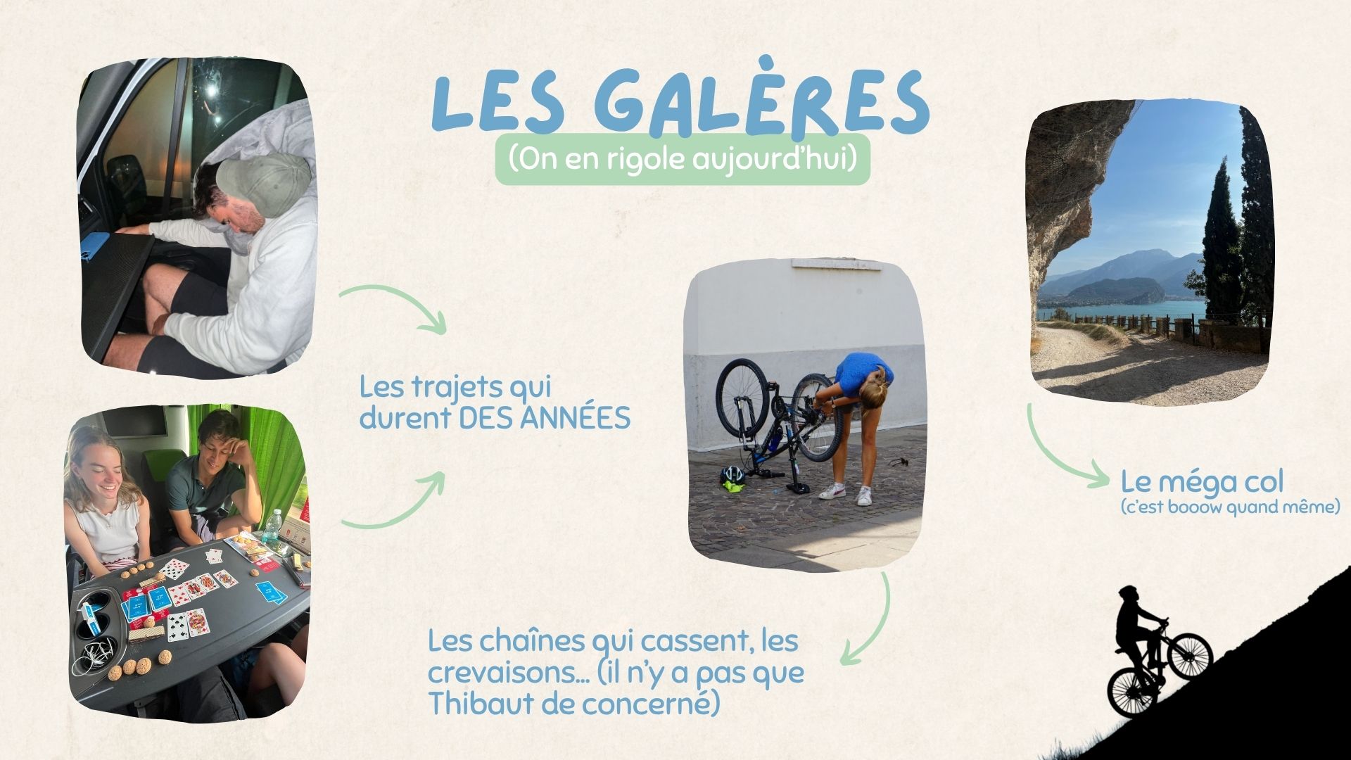 Positions cheloues pendant les pauses, c’est le seul mec qui se fait une cheville au foot alors qu’on est en camp vélo!